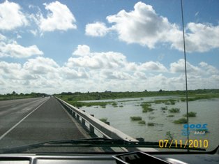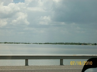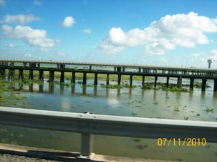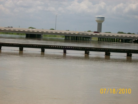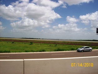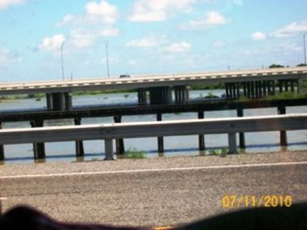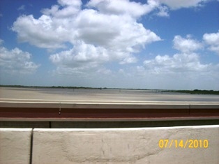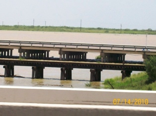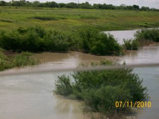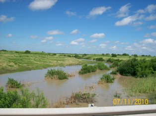 I've tried to put these by dates so you can see the progress. Pictures are of Mercedes Floodway, LaFeria floodway So on 506, & Floodway between McAllen & Hidalgo from July 11 through yesterday afternoon. We went to pick up Van this evening about 6 & looks the same. However, the dam south of Mission has been opened again and much more flooding. Don't know if that will cause problems. Will try to keep you all informed. As Sam & I were coming back from Alamo with the Van, it was so wierd to come upon the floodway and thinking - gee, if we just had our boat down here - we could do some fishing........... quite the awesome feeling.......... Was thru Mercedes the other day - Floodway is pretty much dry all over - quite a change than before we went to Ks. 1st of August.